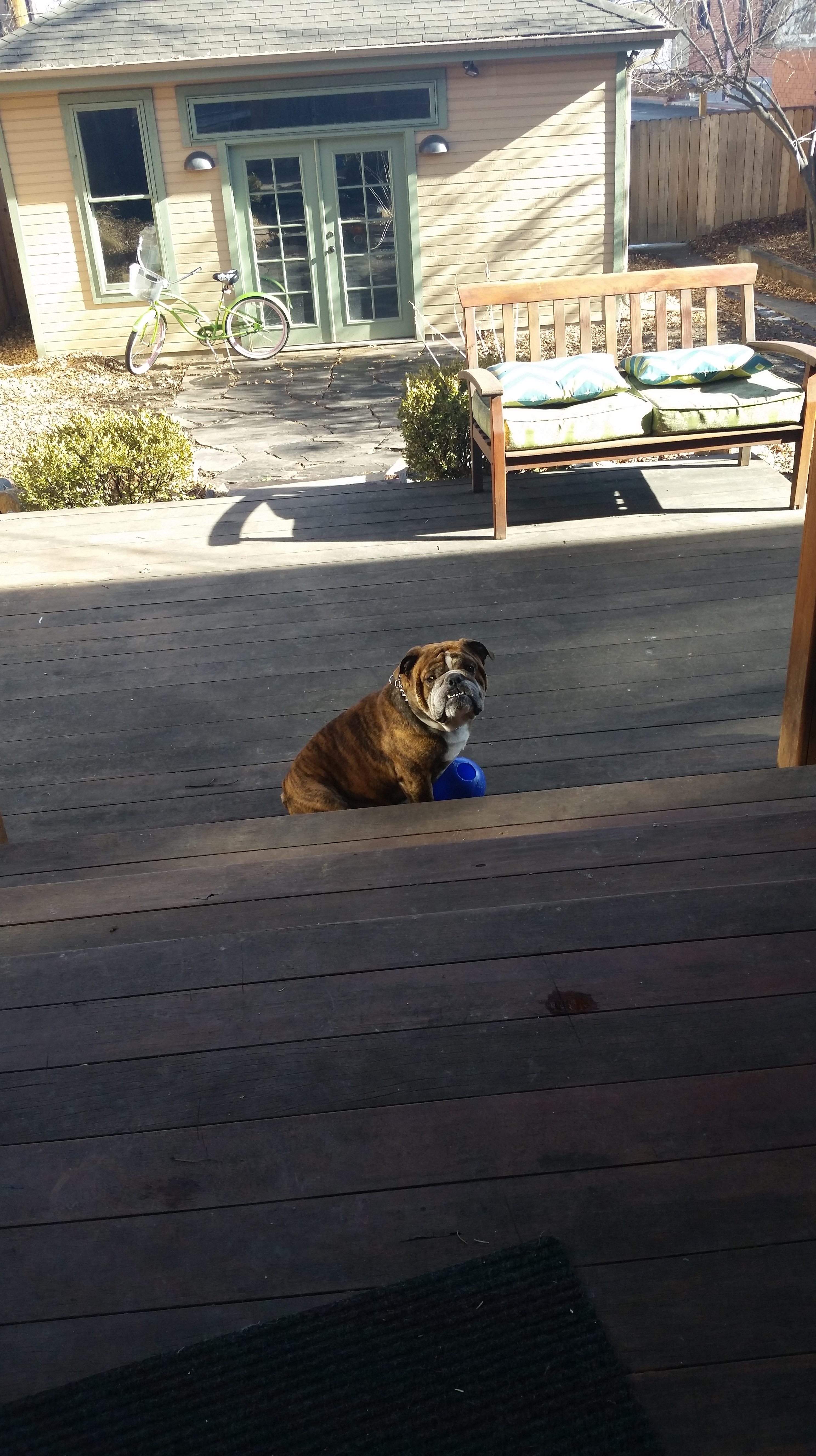 I am Dozer. That’s me in the picture, and if you haven’t noticed I’m a Bulldog, an English Bulldog. I’m almost 7 years old, and weigh between 60 and 70 pounds, according to Tom my buddy (the guy typing this.) my coat is brindle, and I LOVE PEOPLE. I don’t know what it is about me but most of you (people) seem to like me quite well and are always asking Tom, can i pet him?, How much does he way?(kind of personal don’t you think.), what color coat is that? Can I take his picture? It’s all really cool to me, I just love it. I get my back rubbed, my ears scratched, my butt scratched, and my favorite my belly rubbed. OH heaven.